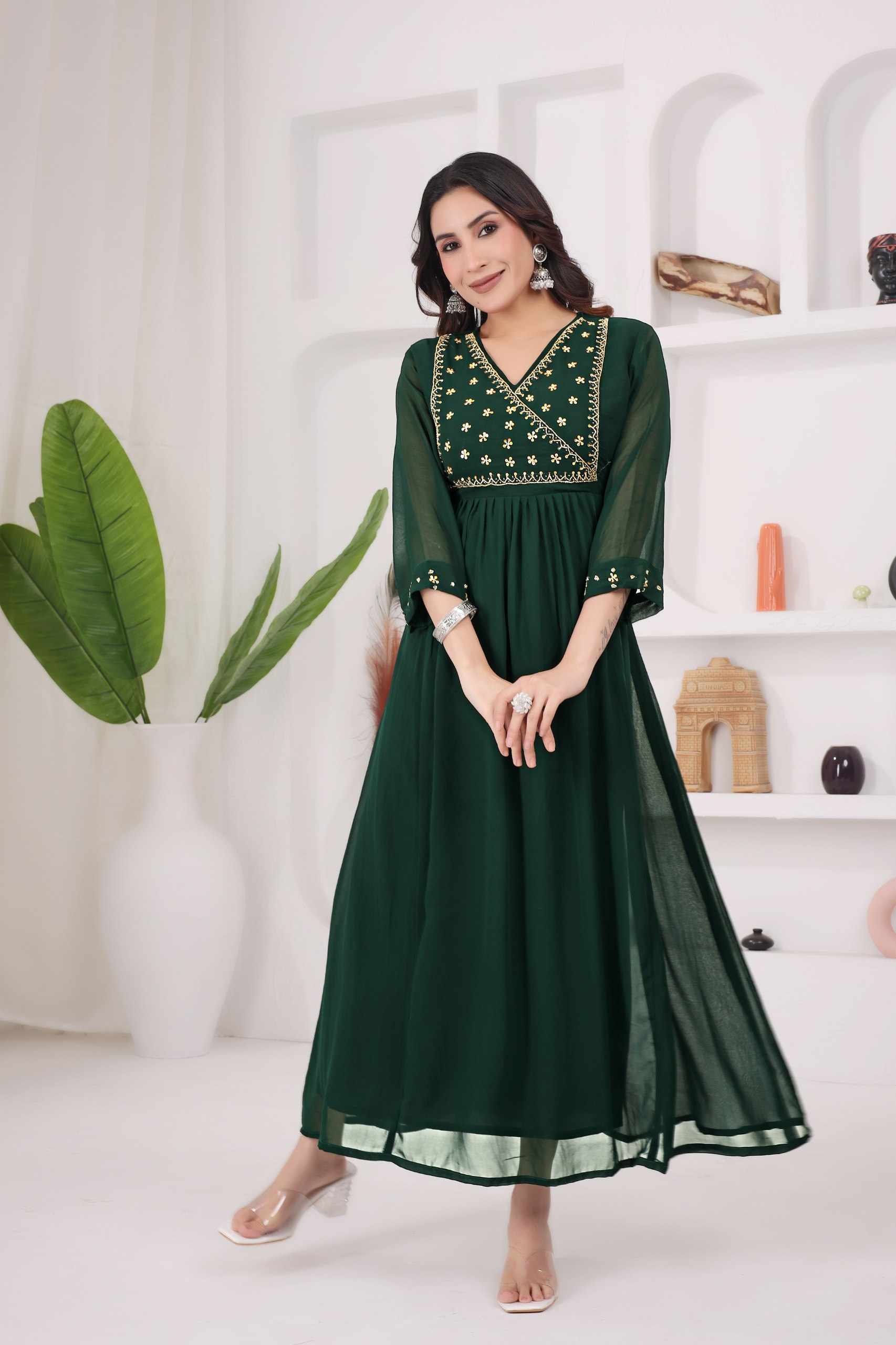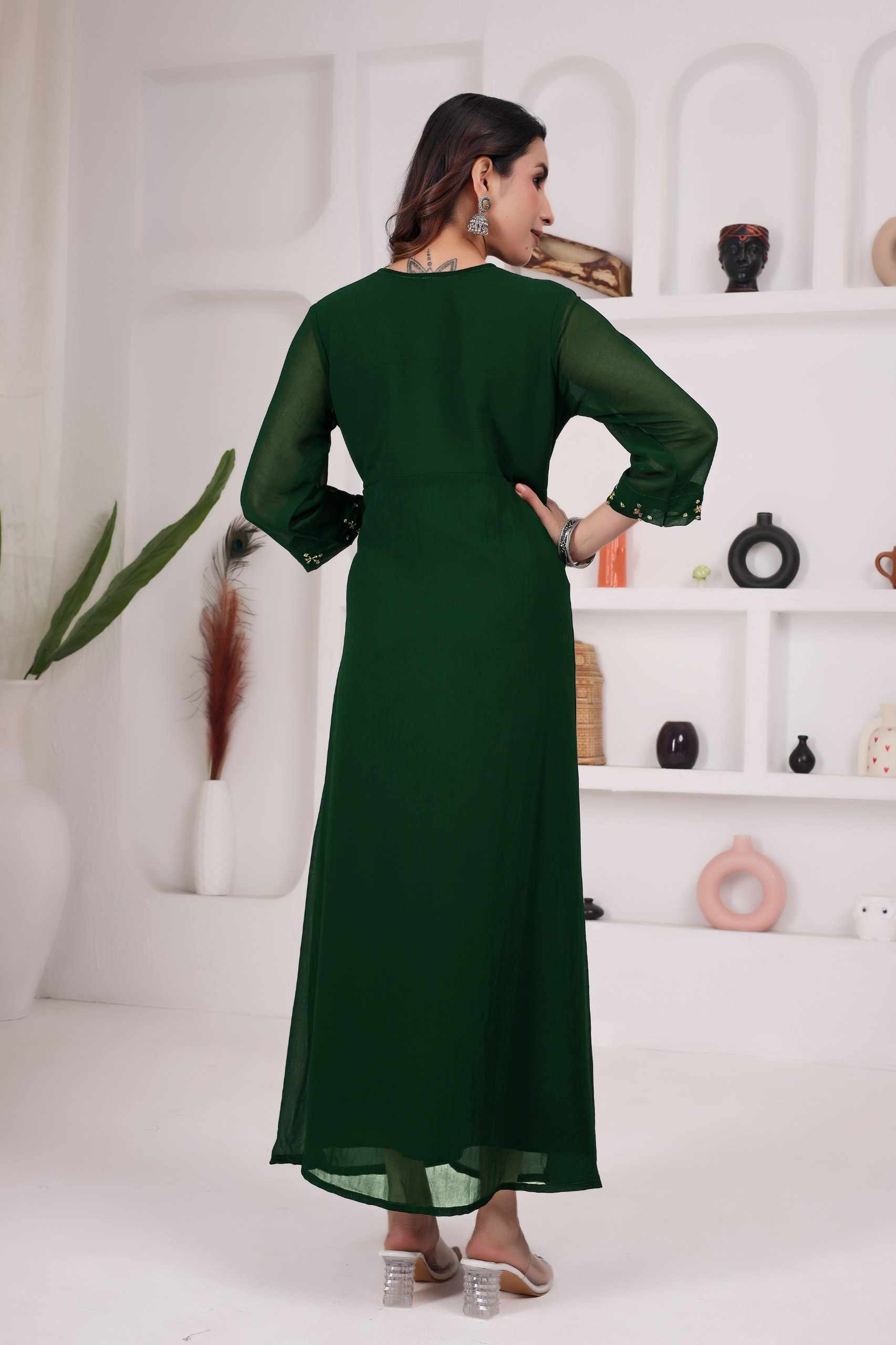WM12 GREEN BLOOMING GEORGETTE BEAUTIFUL HANDWORK KURTI